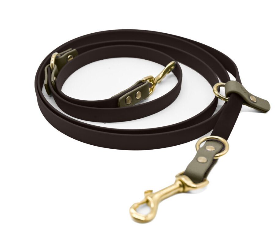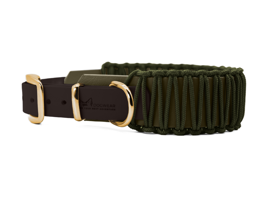 Wir verarbeiten zwei Materialien, die sich perfekt ergänzen: Biothane® – ein Polyestergewebe mit widerstandsfähiger TPU‑Ummantelung – und hochfestes Paracord, ursprünglich für Fallschirme entwickelt. Daraus entstehen Leinen, Halsbänder und Zubehör, die lederähnlich aussehen, vegan sind, > 400 kg Zugkraft aushalten, wetter‑ sowie UV‑beständig bleiben und sich mit einem Wisch reinigen lassen – ideal für jedes Outdoor‑Abenteuer.