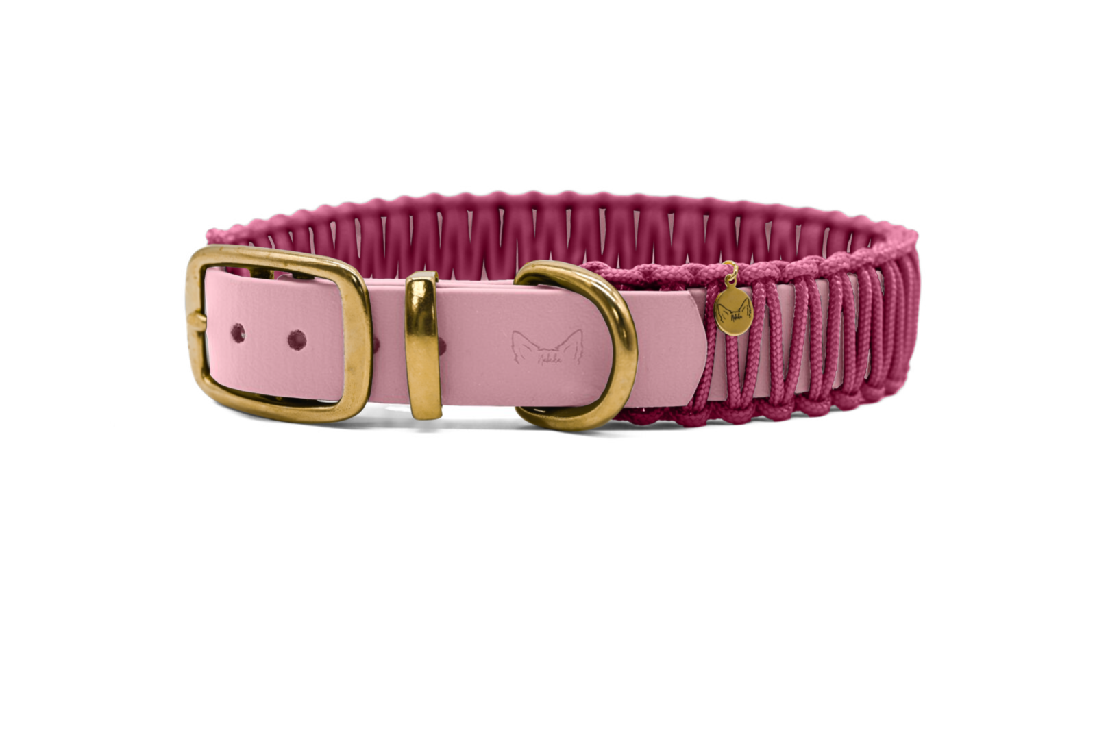 Stilvoll umwebt mit Paracord Typ II und Accessoires deiner Wahl für einen eleganten Look. Praktischer Ring für die einfache Befestigung von Leine und Hundemarken.