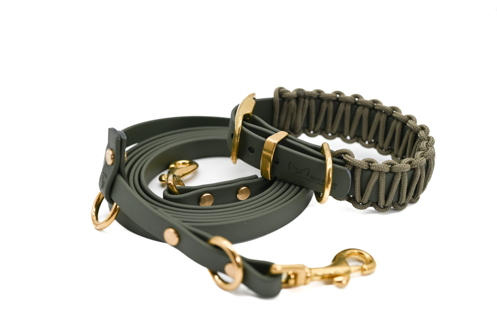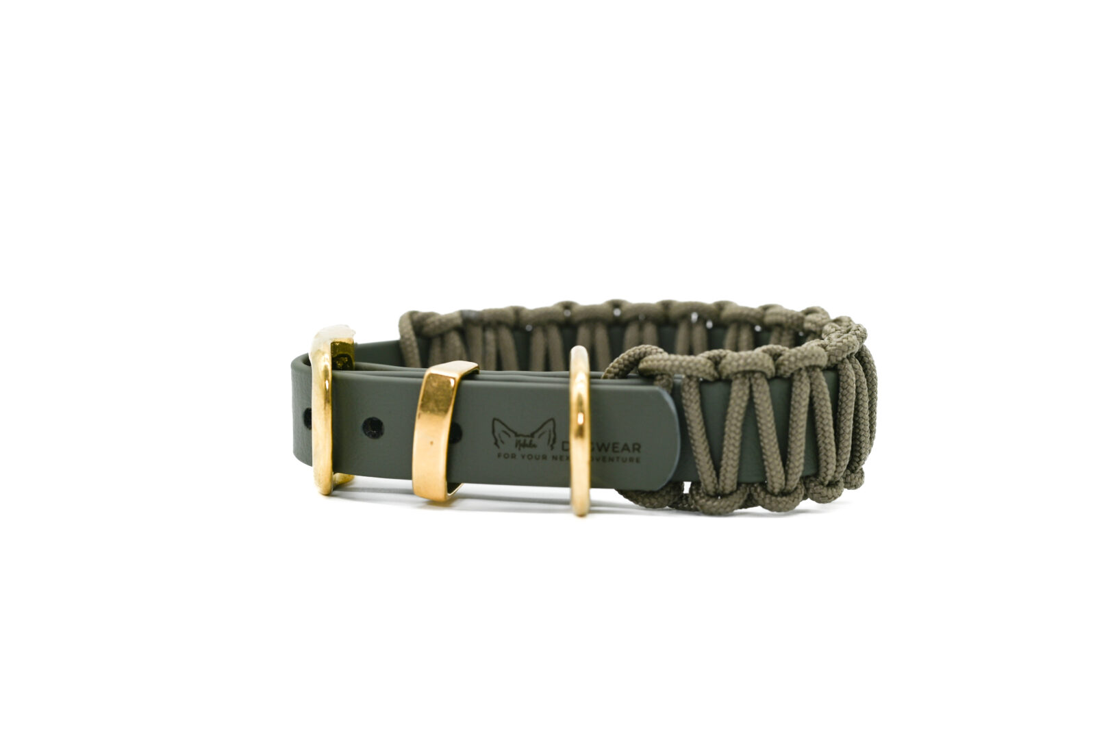 BioThane®-Material – Stilvoll umwebt mit Paracord Typ II und Accessoires deiner Wahl für einen eleganten Look. Praktischer Ring für die einfache Befestigung von Leine und Hundemarken.