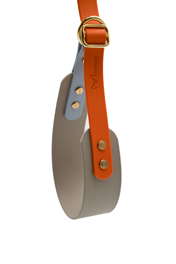 Das Halsband besteht aus BioThane®, welche eine lederähnliche Optik und eine entsprechend strukturierte Oberfläche hat. BioThane® ist haltbarer und langlebiger als Leder, ist absolut wasserdicht, schmutzabweisend und fühlt sich großartig an.