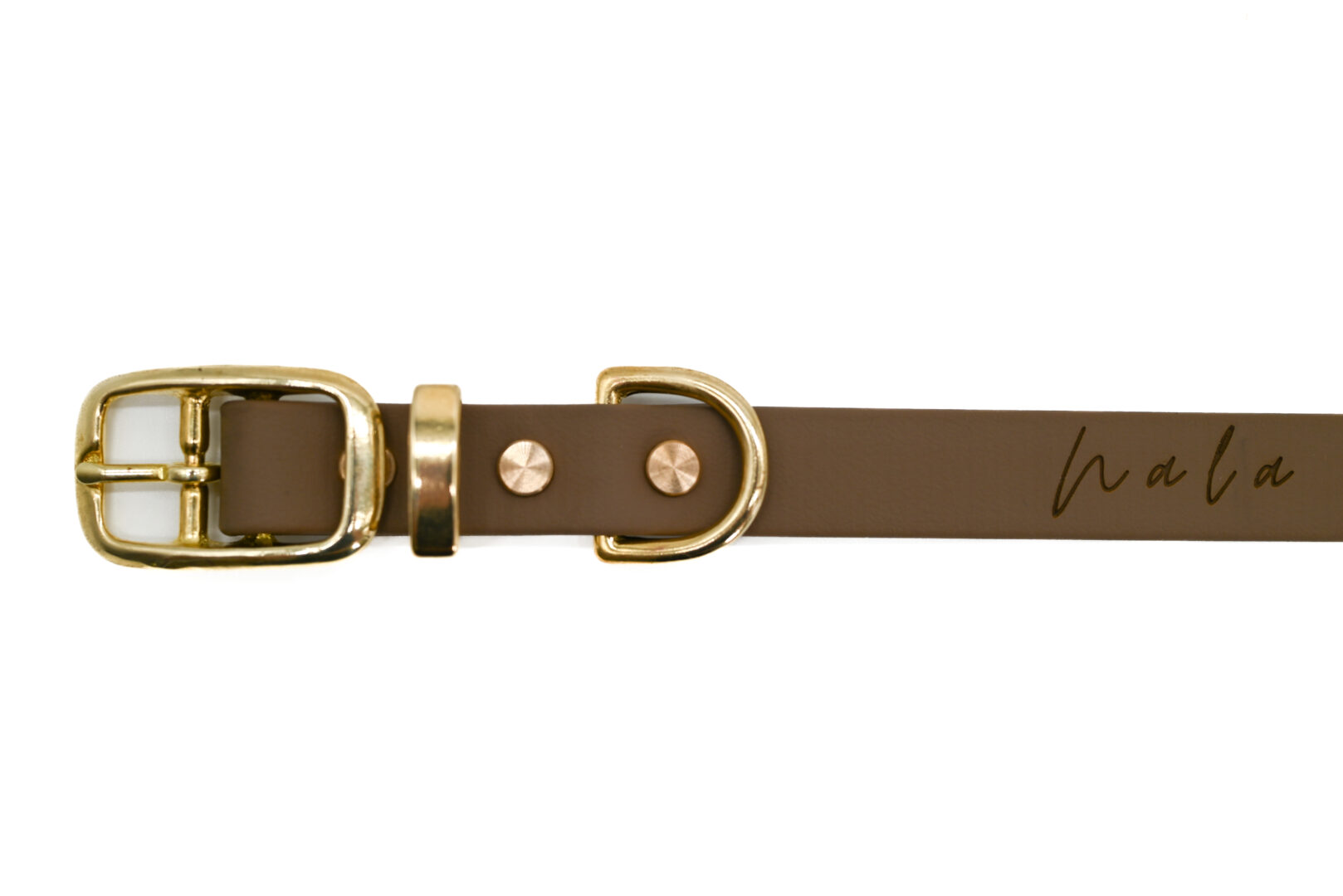 Das Halsband besteht aus BioThane®, welche eine lederähnliche Optik und eine entsprechend strukturierte Oberfläche hat. BioThane® ist haltbarer und langlebiger als Leder, ist absolut wasserdicht, schmutzabweisend und fühlt sich großartig an.
