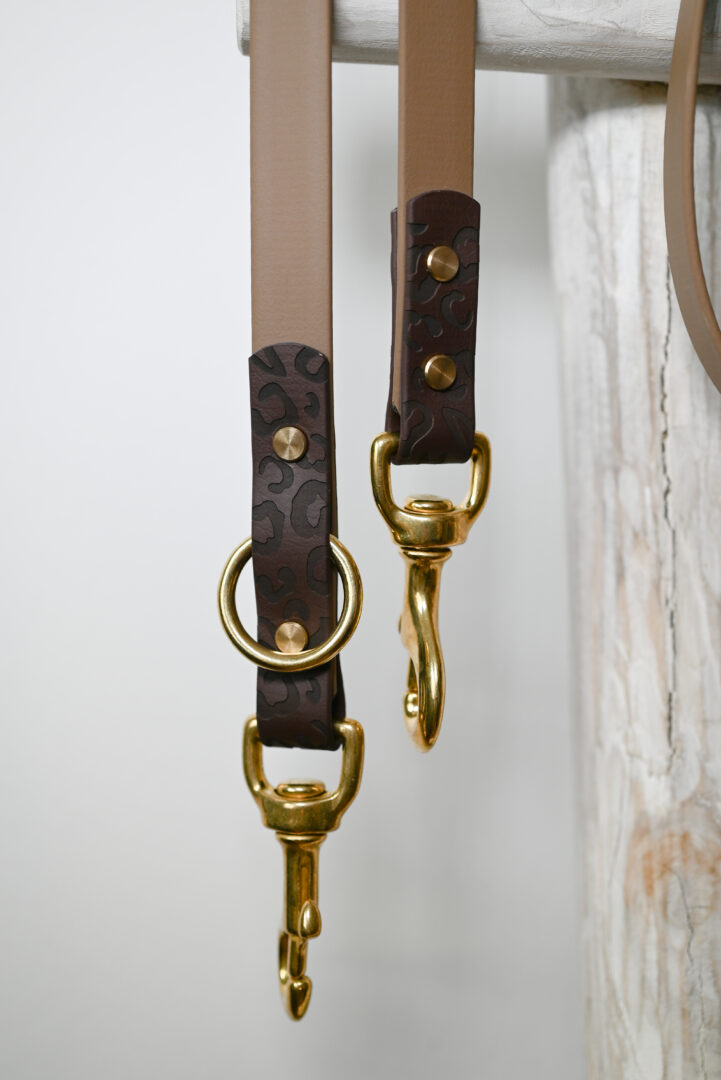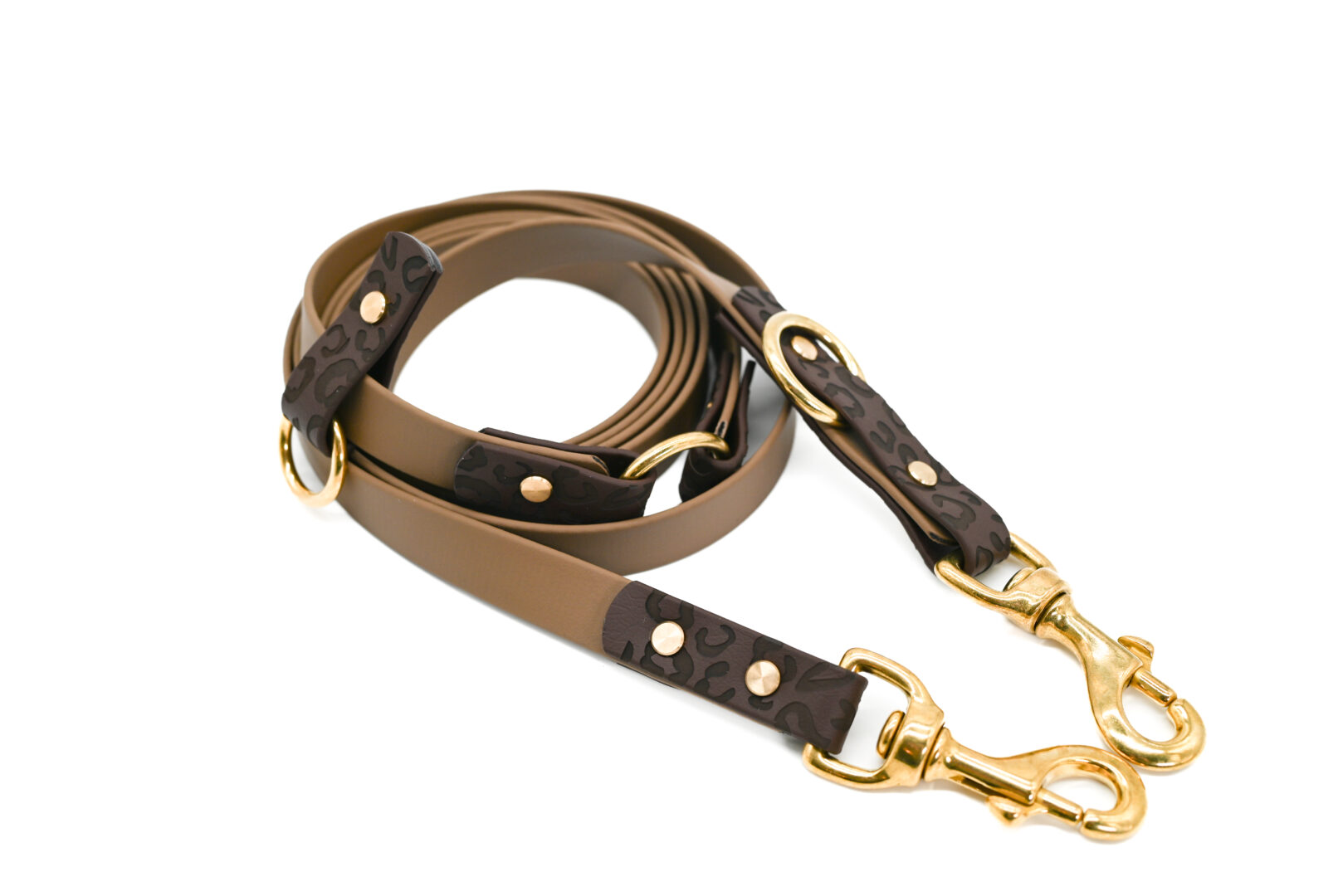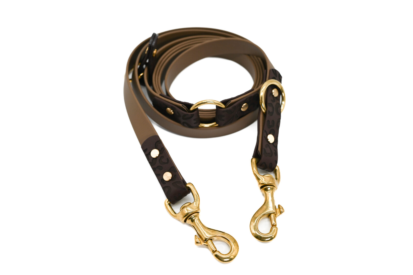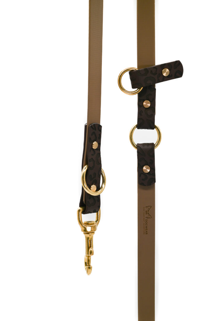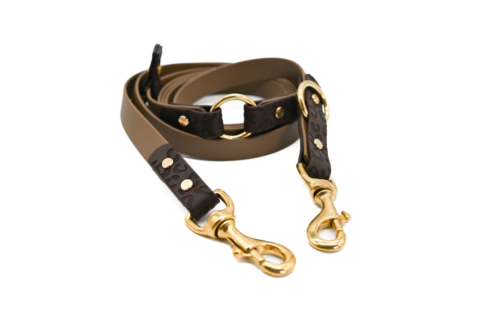 Die Leine besteht aus 16 mm breiter BioThane®, welche eine lederähnliche Optik und eine entsprechend strukturierte Oberfläche hat. BioThane® ist haltbarer und langlebiger als Leder, ist absolut wasserdicht, schmutzabweisend und fühlt sich großartig an.