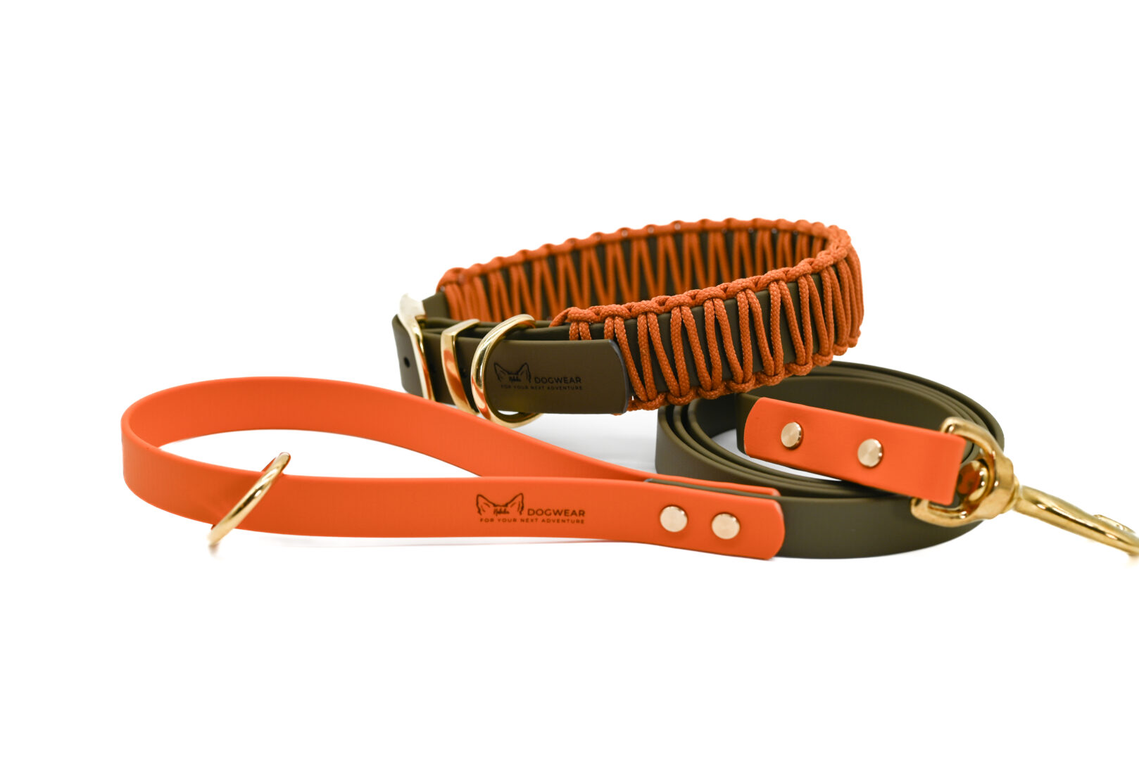 Khaki trifft Burnt Orange. Robustes 20 mm breites BioThane®-Material für Langlebigkeit und Wetterbeständigkeit.
