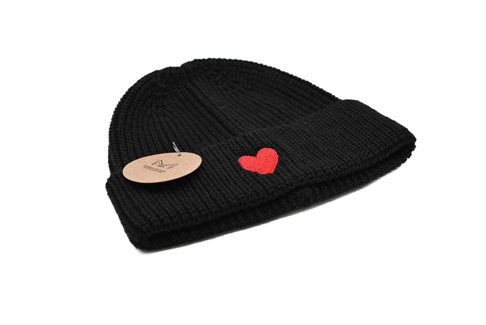 Unisex-Stickmütze aus strapazierfähigem Polyester in Schwarz mit liebevoll besticktem Herz.