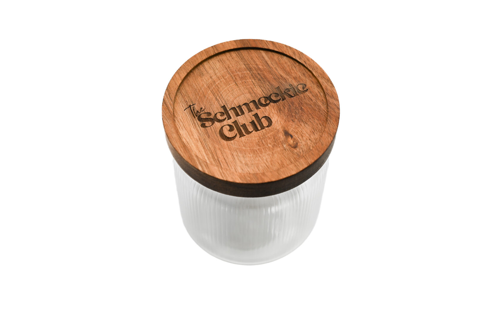 Bringe Stil und Persönlichkeit in deine Küche – mit unserem geriffelten Vorratsglas mit Gravur „The Schmeckie Club“!